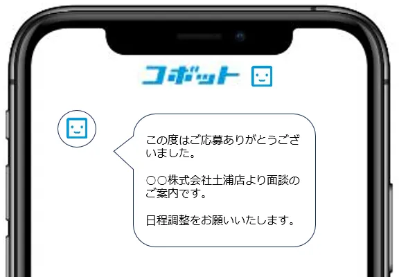コボットが応募者へメール・SMSを自動送信。日程調整を行います。