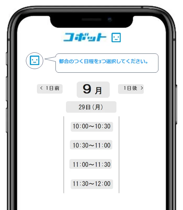 コボットが、面接日時を調整